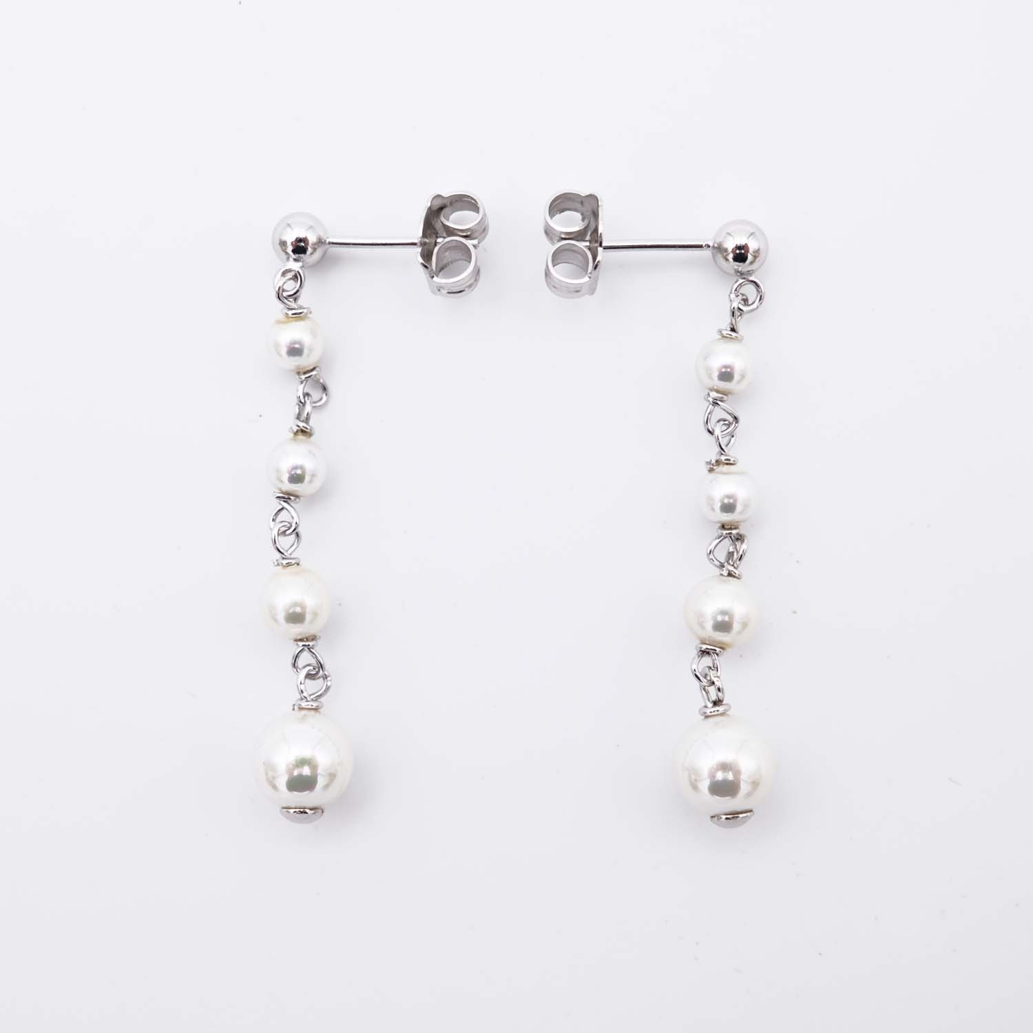 Les boucles d’oreilles en perles de Majorque sont des boucles d’oreilles pendantes d’une longueur de 40 mm. Elles sont composées de trois petites perles ainsi que de fins maillons de chaîne les reliant entre elles. À l’extrémité, se trouve aussi une quatrième perle légèrement plus grosse pour un diamètre total de 7 mm. Ces boucles d’oreilles en perles sont également munies d’un fermoir esthétique de type poussette, autrement appelé fermoir papillon. Permettant ainsi de maintenir la tige plus fermement. Le design de ces boucles d’oreilles en perles est à la fois discret et très élégant.