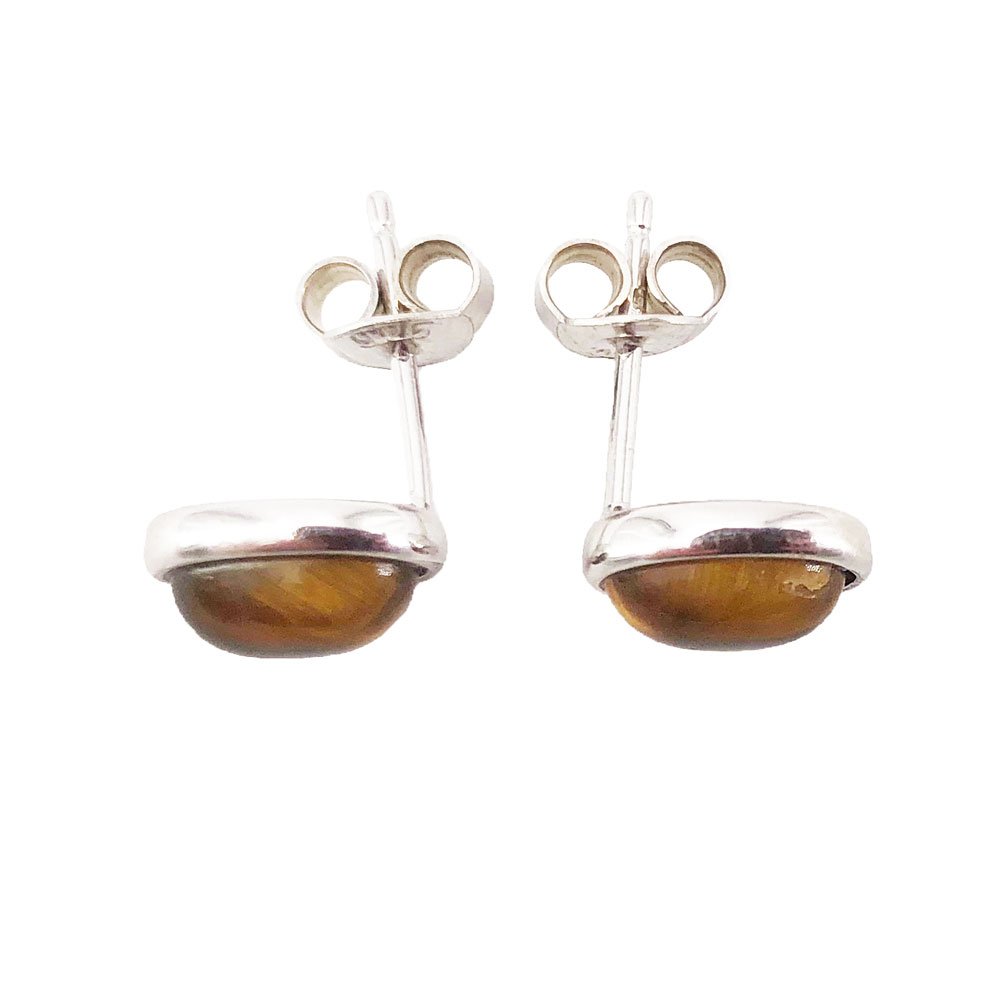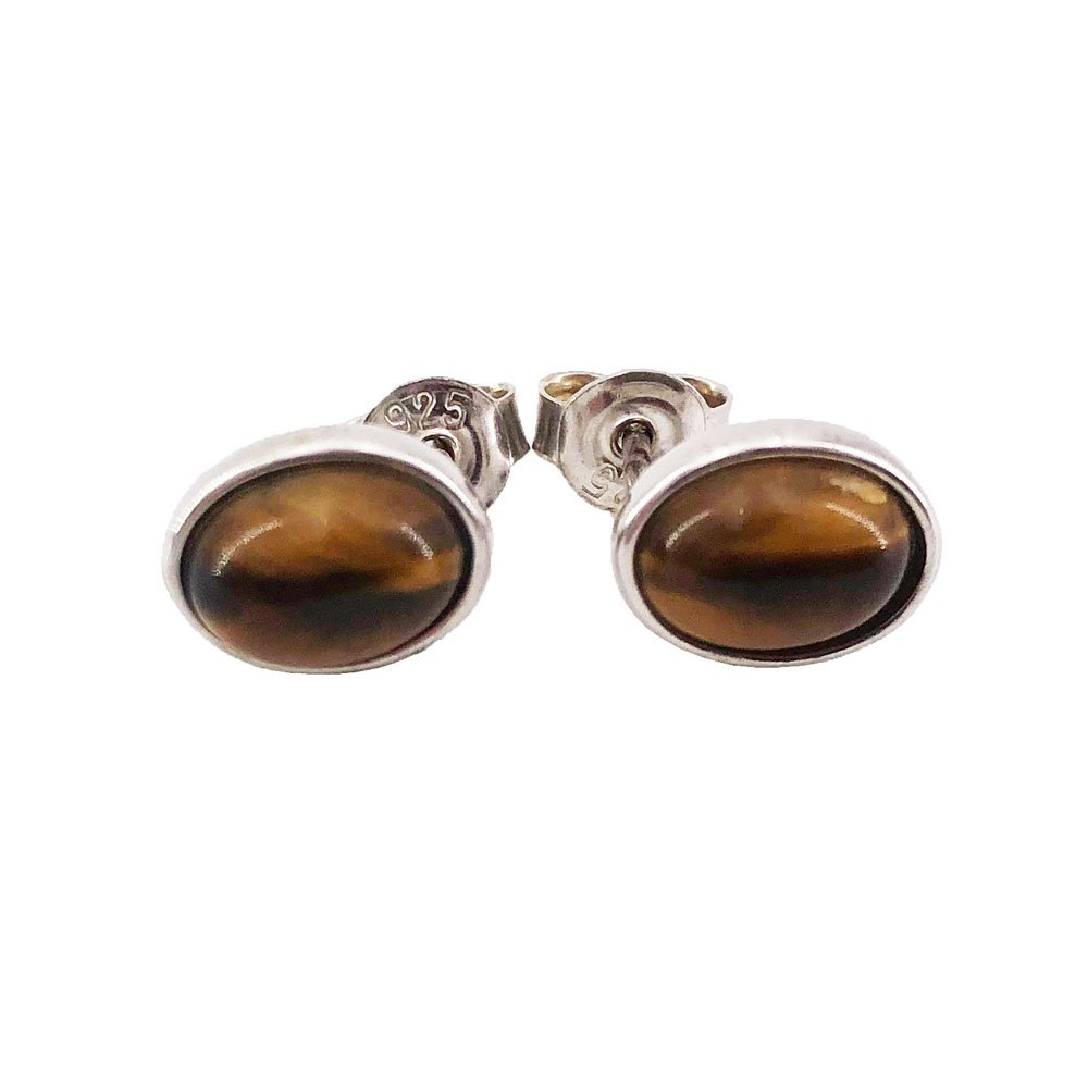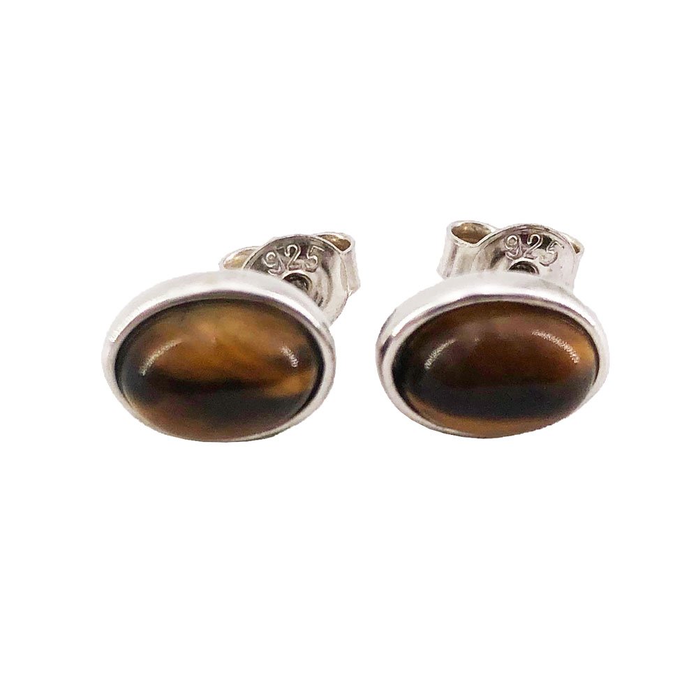 Boucles d’oreilles oeil de tigre collection « Camille » en argent 925 – Cabochon ovale