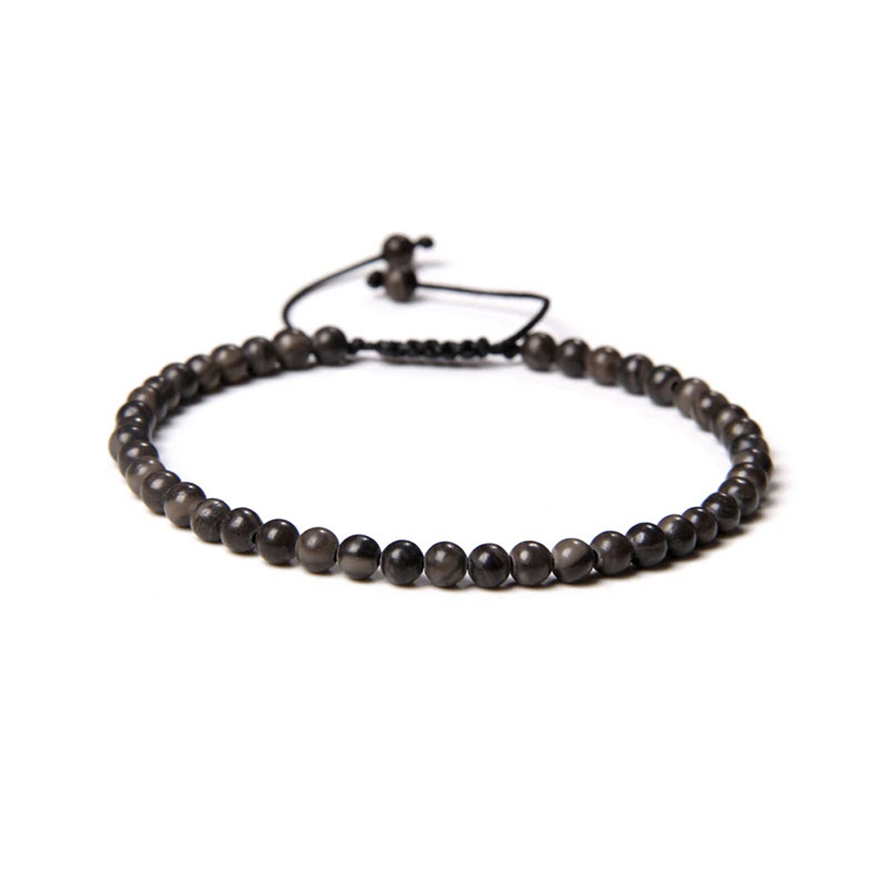Bracelet Bois fossilisé composé de pierres boules de 4mm cordon ajustable