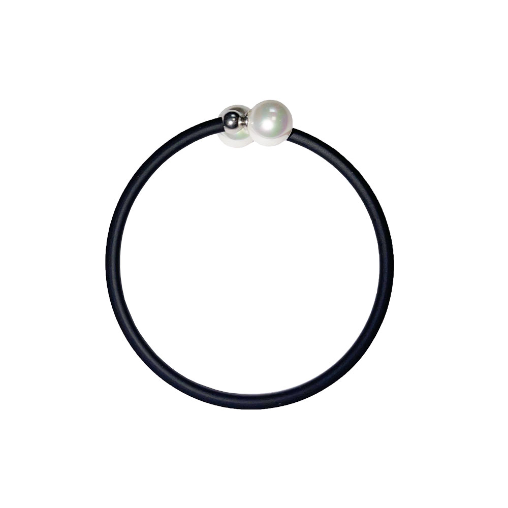 Ce bracelet en perles de Majorque est constitué de perles de 8 millimètres. Ces dernières sont reliées à l’aide d’un délicat cordon en caoutchouc avec un noyau en acier. Il s’agit tout simplement d’acier enduit d’une petite couche de rhodium, qui sert à préserver l’éclat du métal précieux.