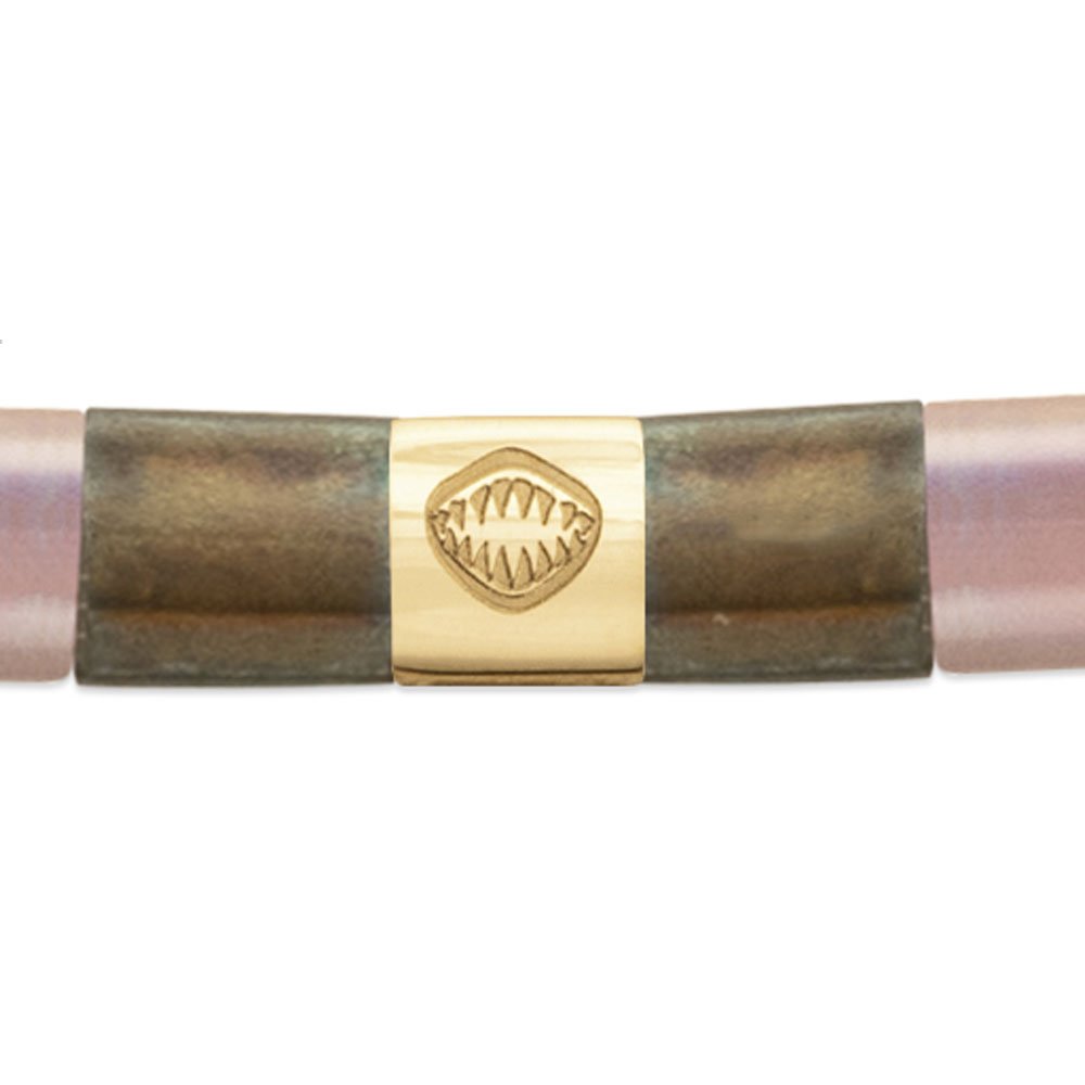 Depuis 1930, la marque Miyuki œuvre à la fabrication de ses perles reconnues pour leur qualité exceptionnelle. Elles sont travaillées dans la plus pure tradition japonaise. Afin de réussir à obtenir leur brillance si caractéristique, elles sont soumises à un procédé qui exige patience et savoir-faire. En effet, la rocaille de verre qui compose chaque perle est issue d’un savant mélange de minéraux. La silice, le carbonate de calcium et de sodium sont chauffés à haute température pour former le verre. Celui-ci est soufflé selon des méthodes ancestrales. Il est ensuite découpé avec méticulosité pour répondre aux exigences de taille et de forme nécessaires à la confection de chaque bracelet. Cependant, l’apparence définitive des perles ne sera atteinte qu’après deux autres passages au four. Le premier pour adoucir les contours suite à la découpe et le deuxième pour intensifier leurs reflets naturels. Selon le résultat souhaité, une dernière étape de coloration peut être appliquée.