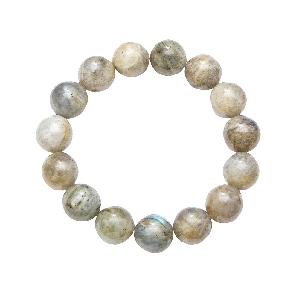 bracelet labradorite en pierres boules de 12mm. À la fois sobre et rayonnant, constitué de pierres exclusivement taillées et polies à la main, il vous transmettra immédiatement une grande élégance. Le bracelet labradorite 12mm se marie avec toutes les tenues.