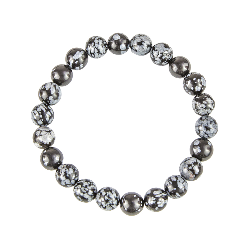 Propriétés du bracelet obsidienne flocon de neige en pierres boules 8mm en lithothérapie