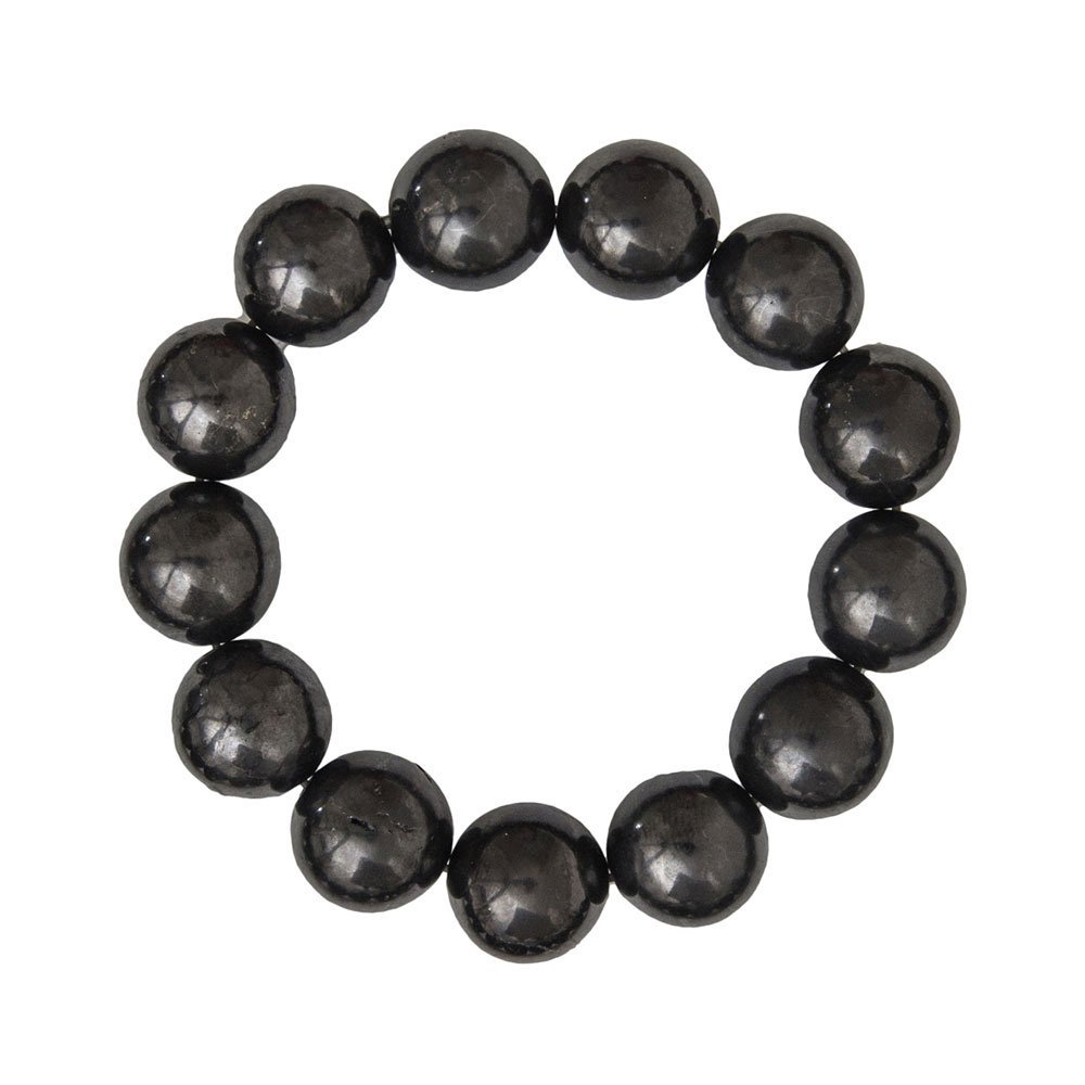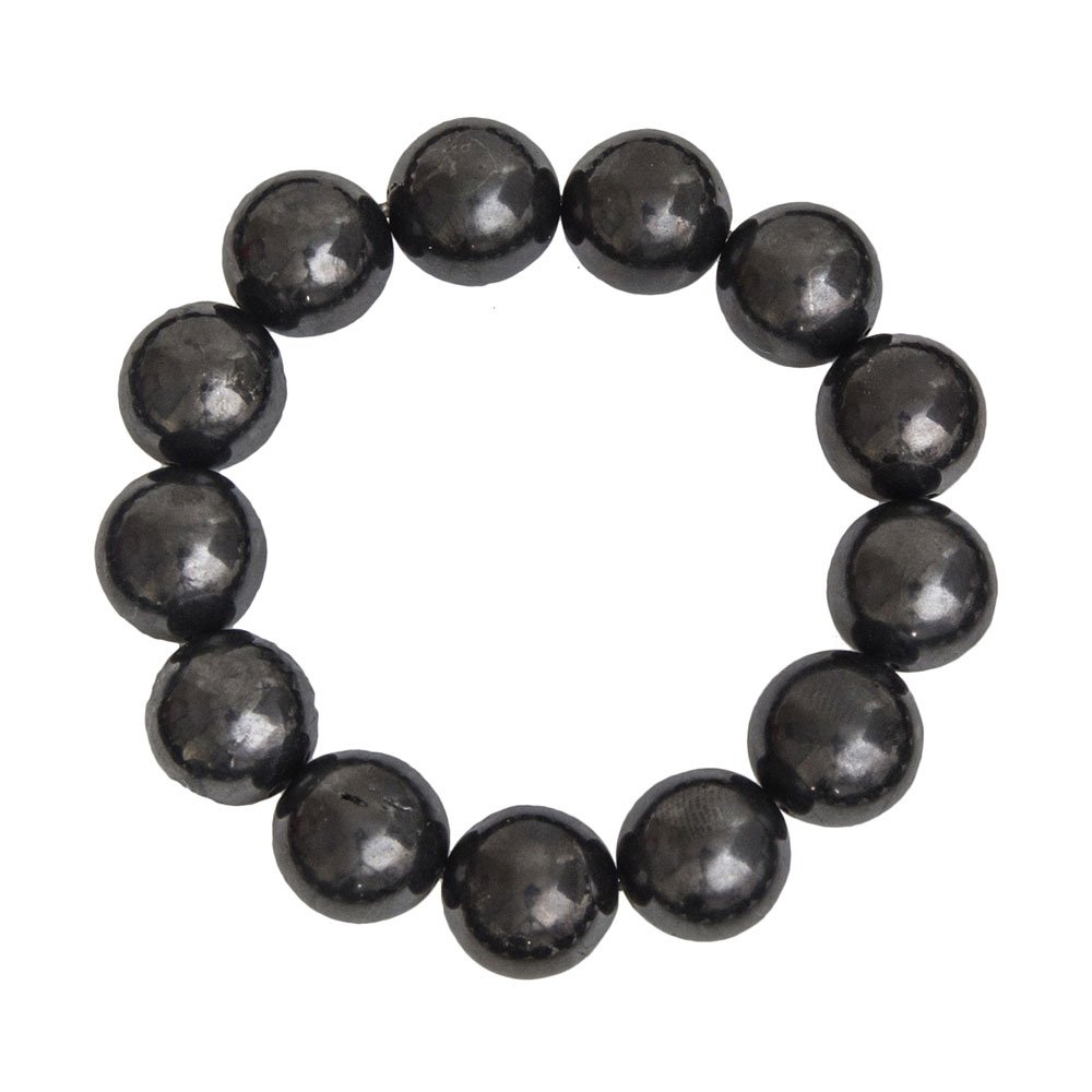 D’un noir intense et argenté, ce minéral se retrouve sous la forme d’un carbone non cristallisé. Son ton profond et intense fait tout son charme et son magnétisme. Votre bracelet shungite en pierres boules de 14mm restaure toute la beauté et la puissance de ses perles. C’est un minéral rare que vous retrouverez à votre poignet, puisqu’on ne le retrouve qu’en Russie. Ce dernier est originaire de la cité de Shunga, duquel provient son nom.