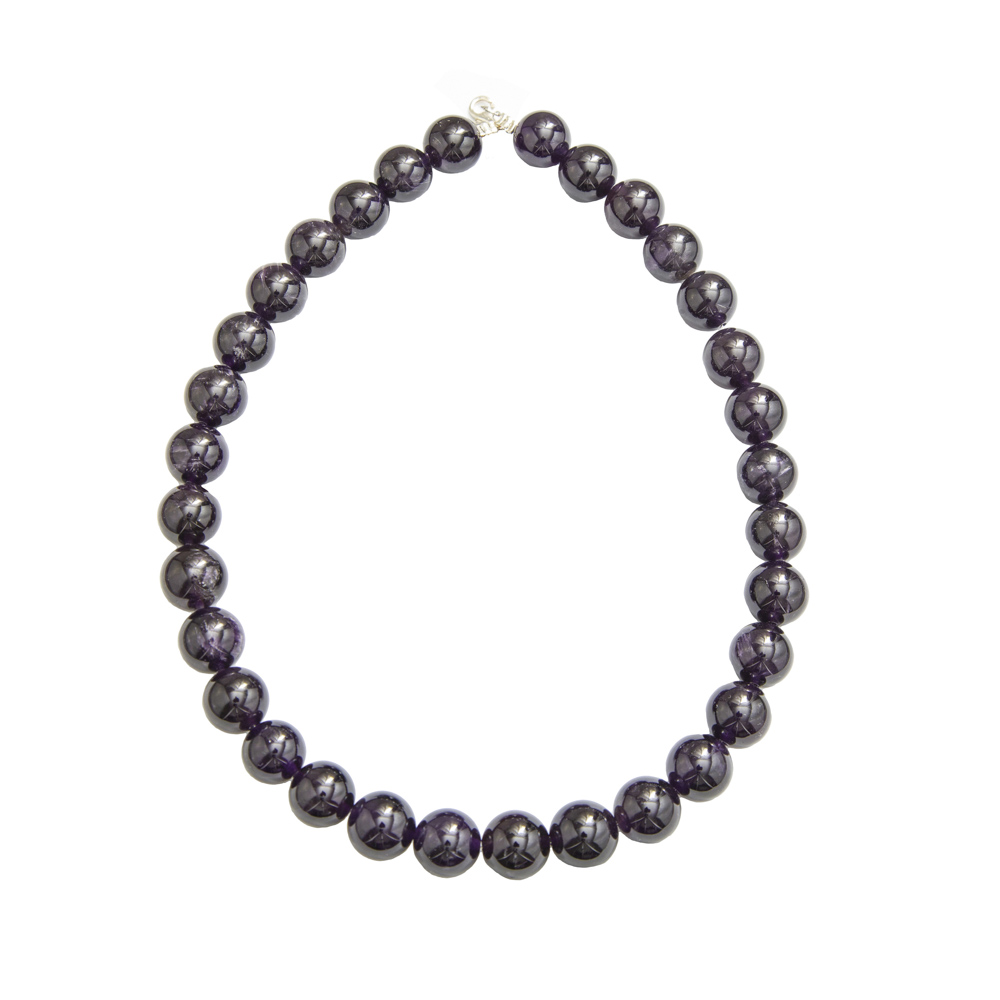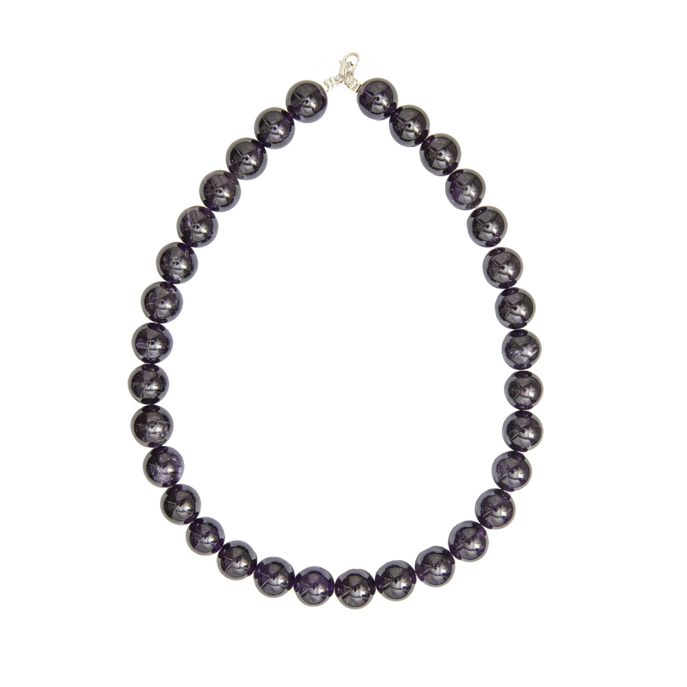 - Appelées “pierre des évêques”, ces perles se retrouvent également dans toutes les religions. Le collier améthyste en pierres boules de 14mm a été fabriqué avec ces pierres de sagesse, de spiritualité. L’améthyste aiguise la créativité, renforce l’intuition ; pierre de purification, elle atténue la colère, la tristesse et maintient l’équilibre dans toutes situations.