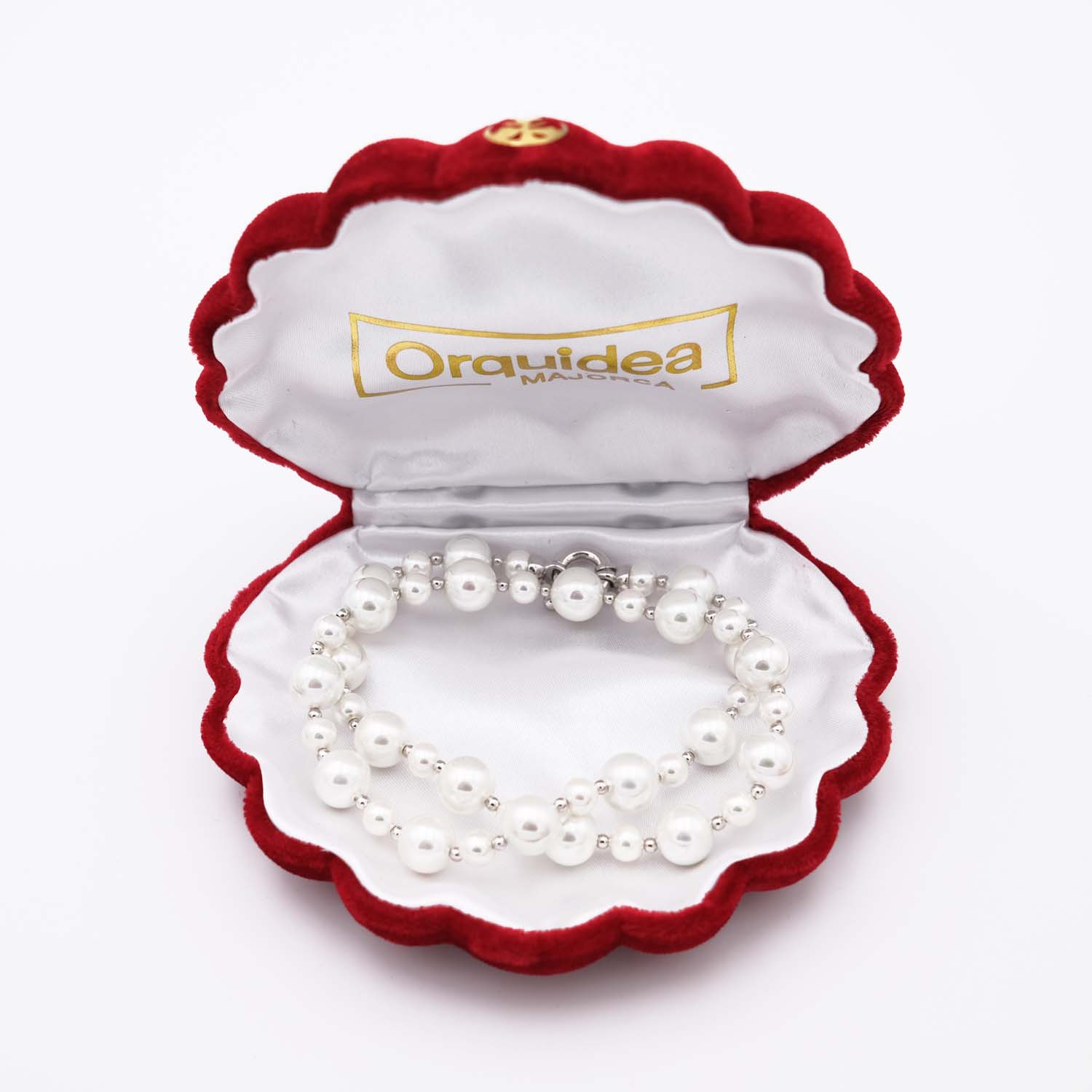 Les perles de Majorque font partie des pierres d’imitation et sont nées sur l’île de Majorque. Pour les fabriquer, on plonge des perles de cristal dans un mélange de guanine et d’écailles de poissons. On peut ainsi les tremper de 12 à 34 fois : en effet, plus on les plonge dans ce mélange, plus leur qualité est importante. Ce bain permet aux perles d’obtenir la brillance la plus naturelle qui soit. Ce sont des perles qui ne ternissent pas et qui sont très intéressantes pour la qualité qu’elles offrent à un prix plus bas qu’une perle naturelle.