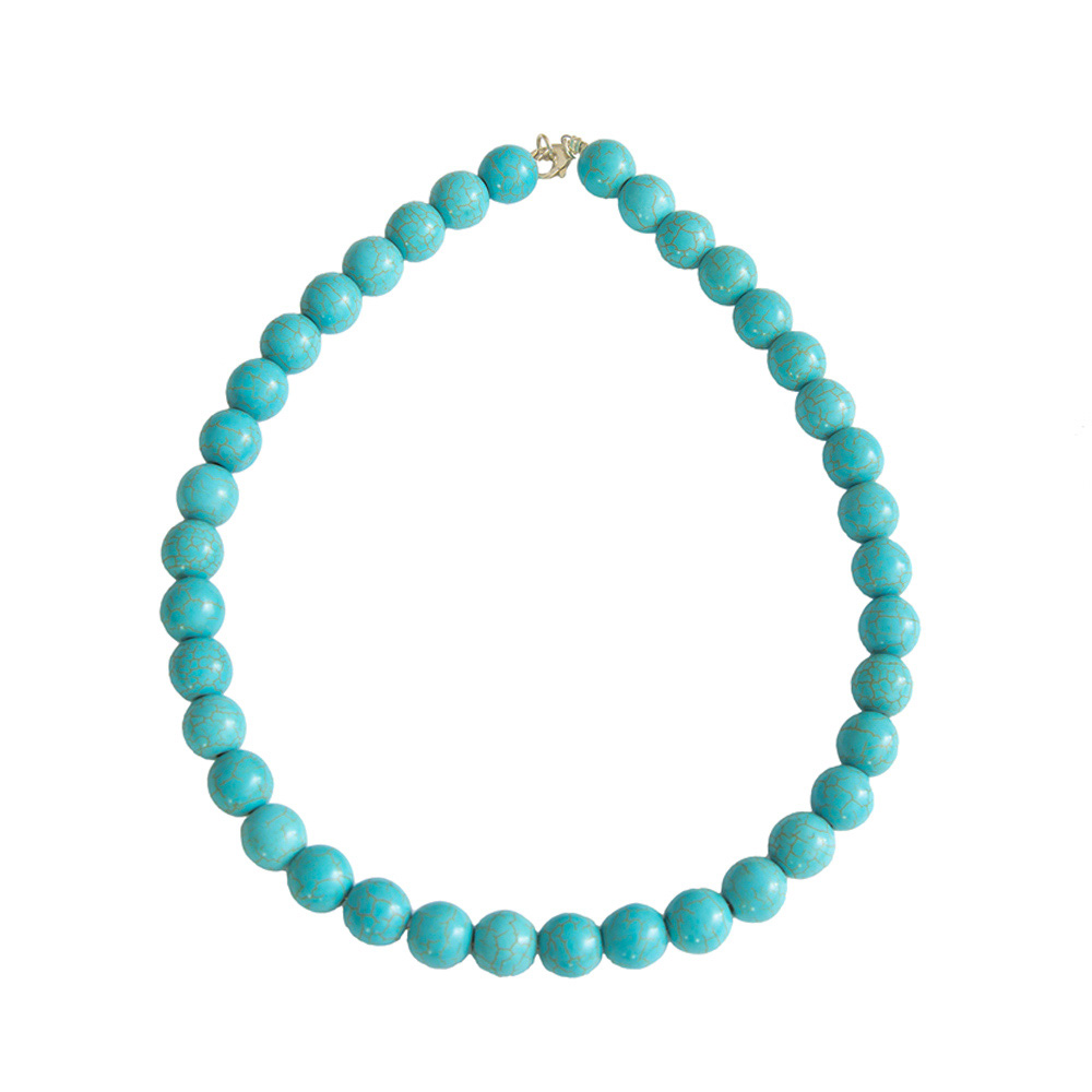 Descriptif du collier howlite bleue en pierres boules 12mm