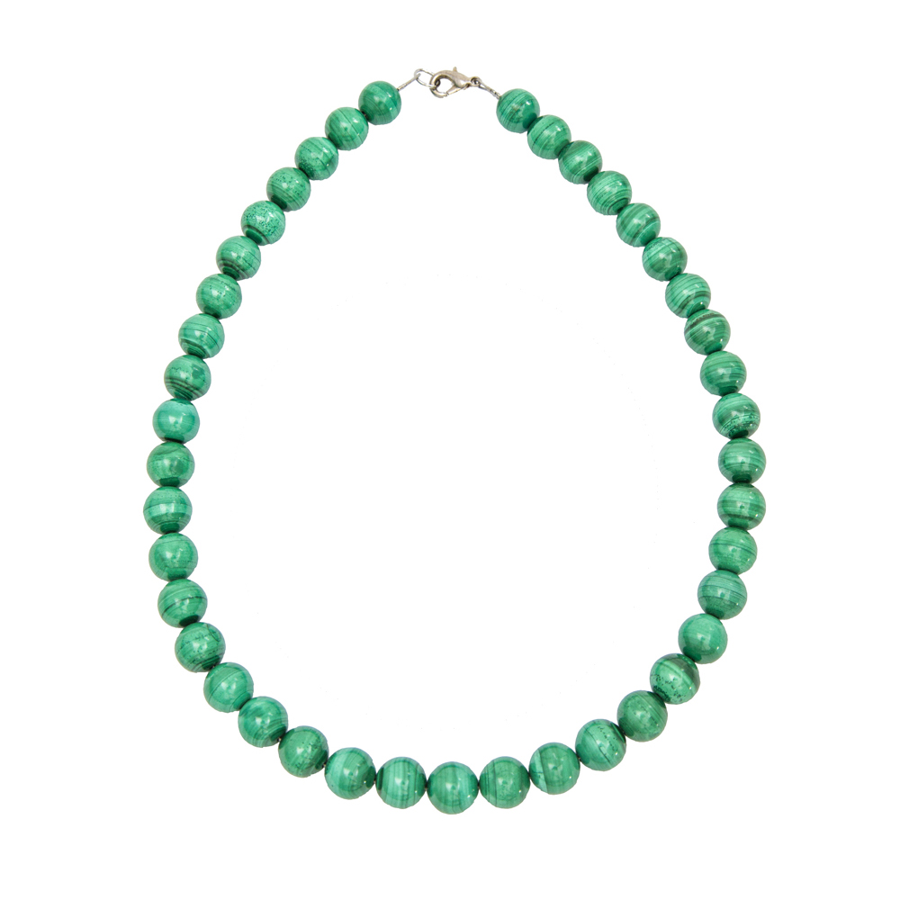 - Le collier malachite 10mm correspond au chakra du coeur. Ce 4ème chakra possède plusieurs teintes, le vert, le rose et l’or. La malachite revête ce splendide vert qui la nomme pour la pierre de l’équilibre et de l’harmonie. On doit placer cette pierre au centre de la poitrine, le chakra du coeur, afin d’harmoniser le corps en entier.