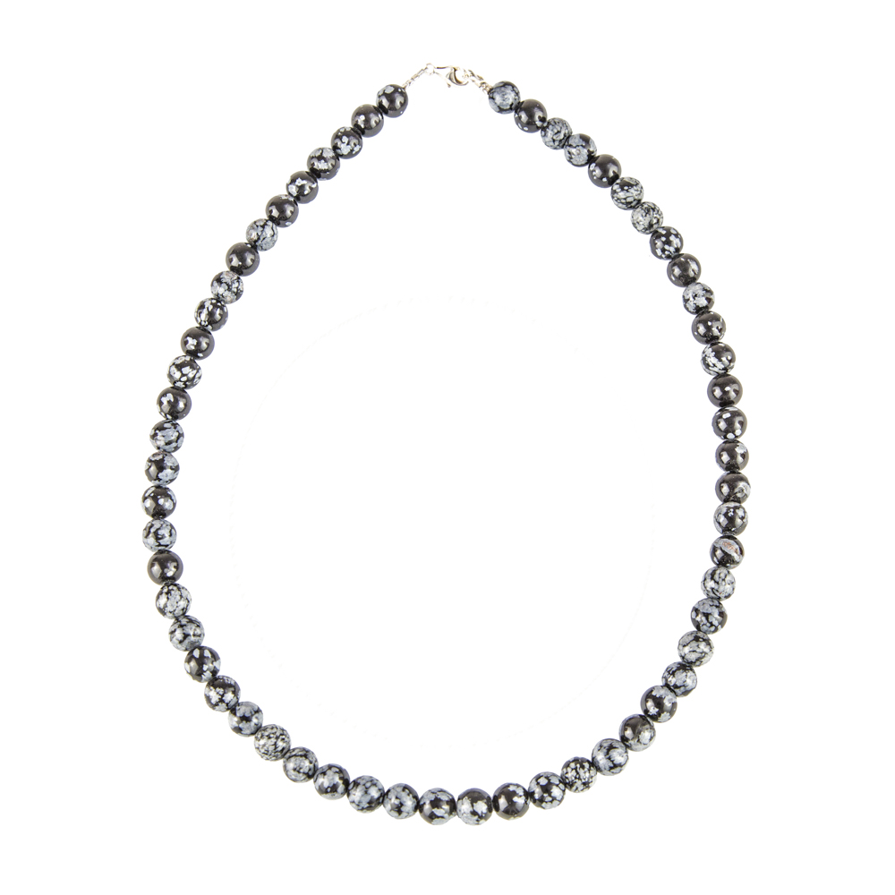 Collier obsidienne flocon de neige composé de pierres boules de 8mm