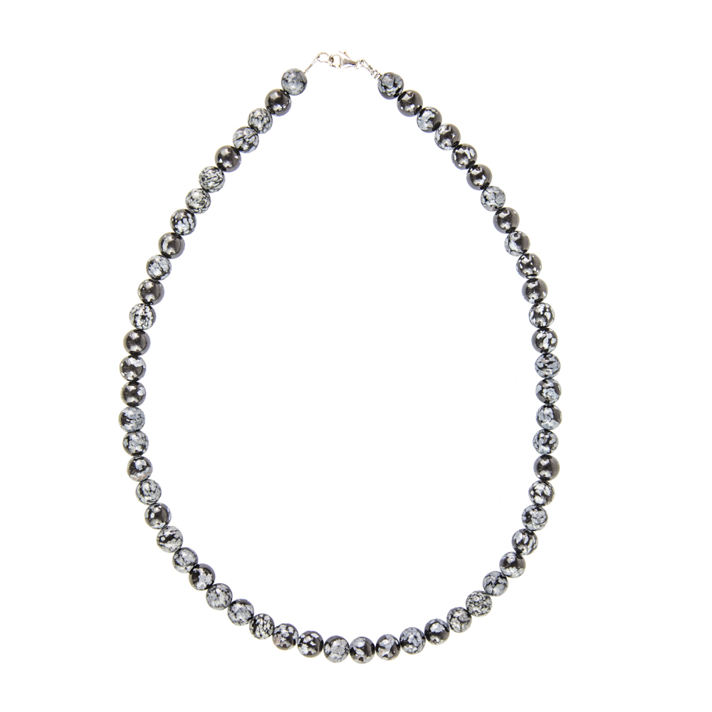 Vertus du collier obsidienne flocon de neige en pierres boules 8mm en lithothérapie