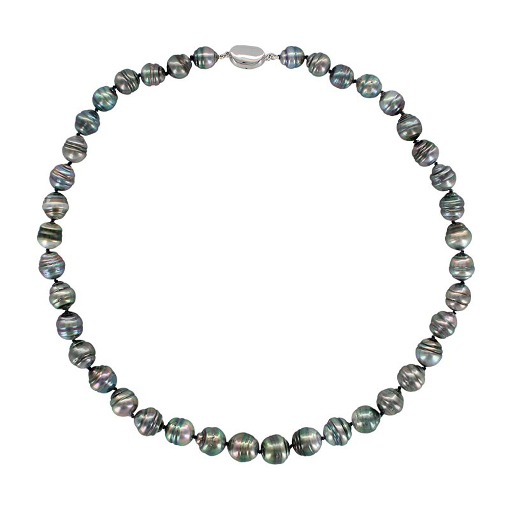 La perle cerclée de Tahiti se présente sous la forme d’une sphère revêtant une couleur argentée magnifique. Elle dispose d’un beau lustre et d’un bel orient. La perle cerclée possède des bandes régulières ou des anneaux perpendiculaires à son axe de rotation. Le mystère de ce cerclage repose sur le mouvement de rotation du nucléus pendant la croissance la perle. Le cerclage a la caractéristique de capter la lumière d’une telle manière que cela produit des nuances fabuleuses sur cette perle de Tahiti.