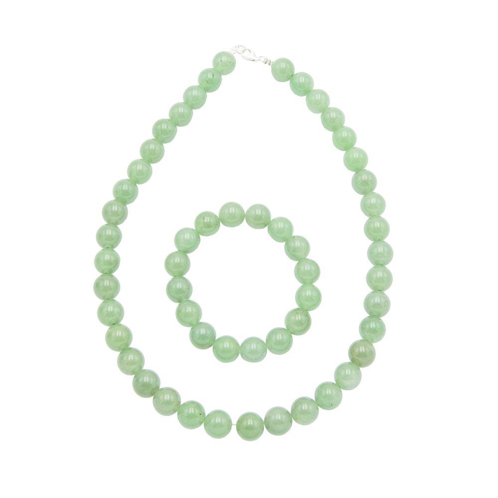Parure composée du bracelet et du collier en aventurine en pierres boules de 12mm