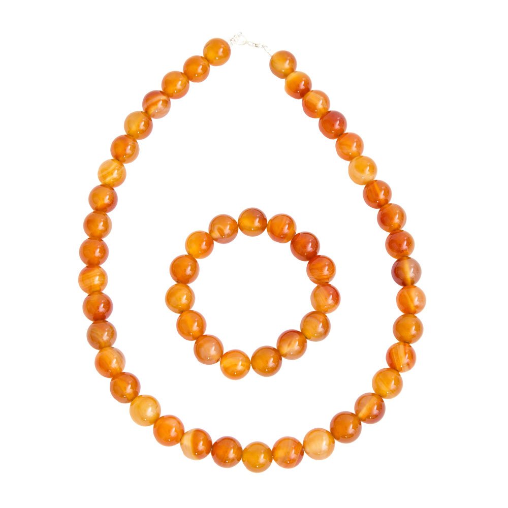 Parure composée du bracelet et du collier en cornaline en pierres boules de 12mm