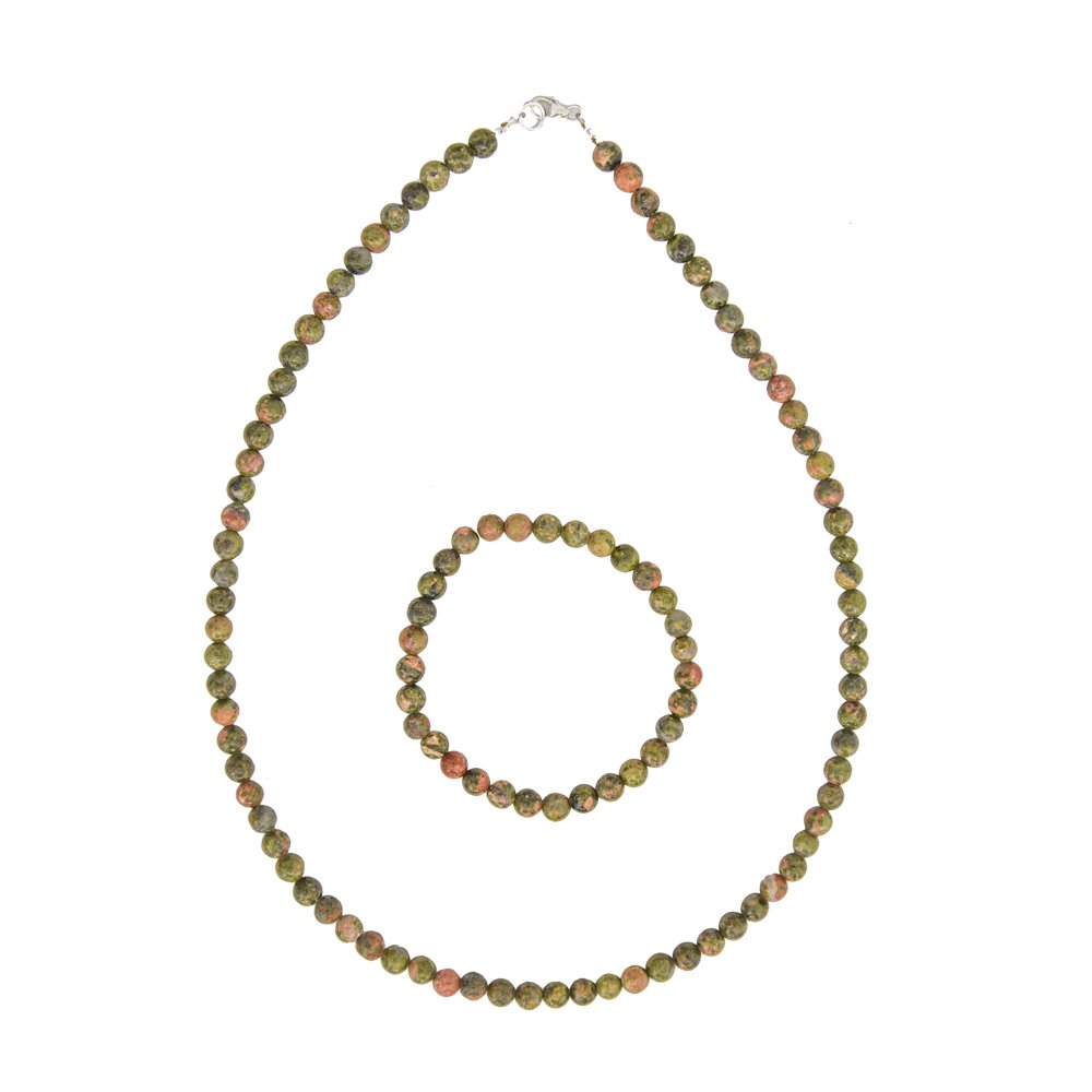 Parure composée du bracelet et du collier en épidote en pierres boules de 6mm