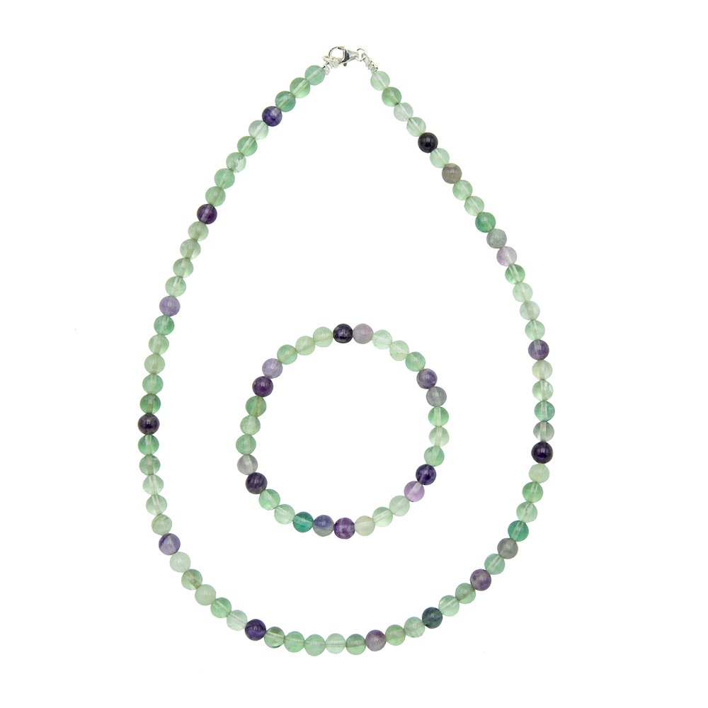 Parure composée du bracelet et du collier en fluorine multicolore en pierres boules de 6mm