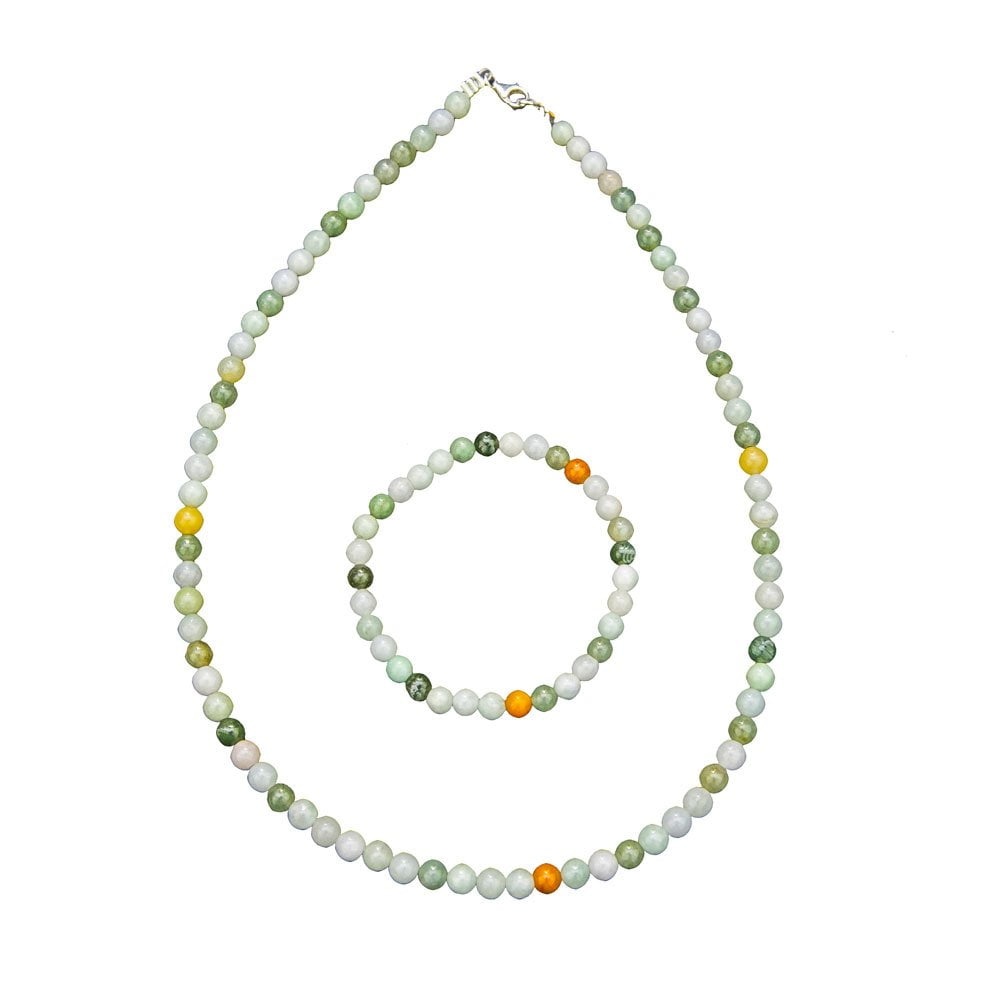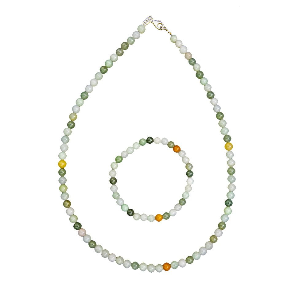 Parure composée du bracelet et du collier en jade vert en pierres boules de 6mm