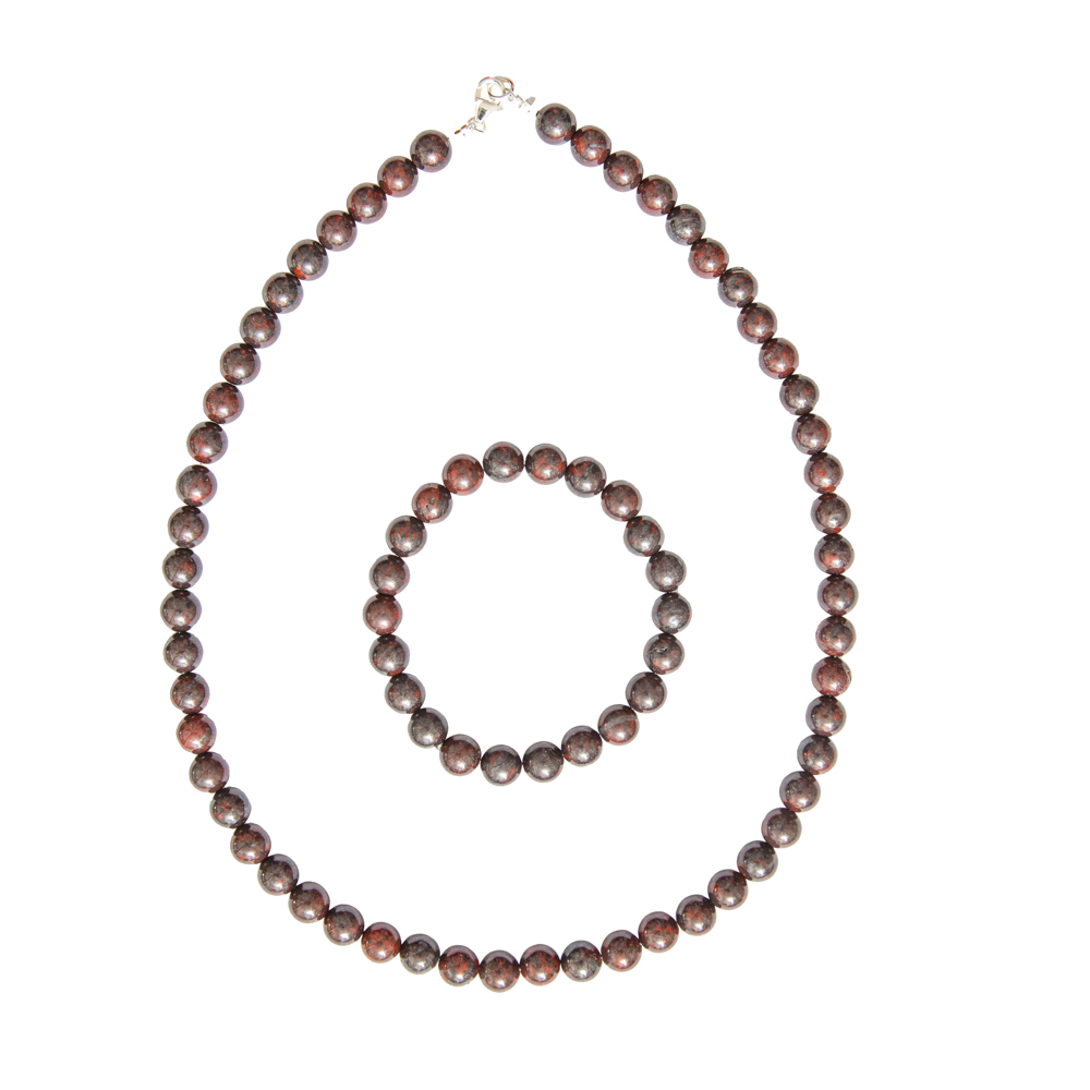 Parure composée du bracelet et du collier en jaspe bréchique en pierres boules de 8mm