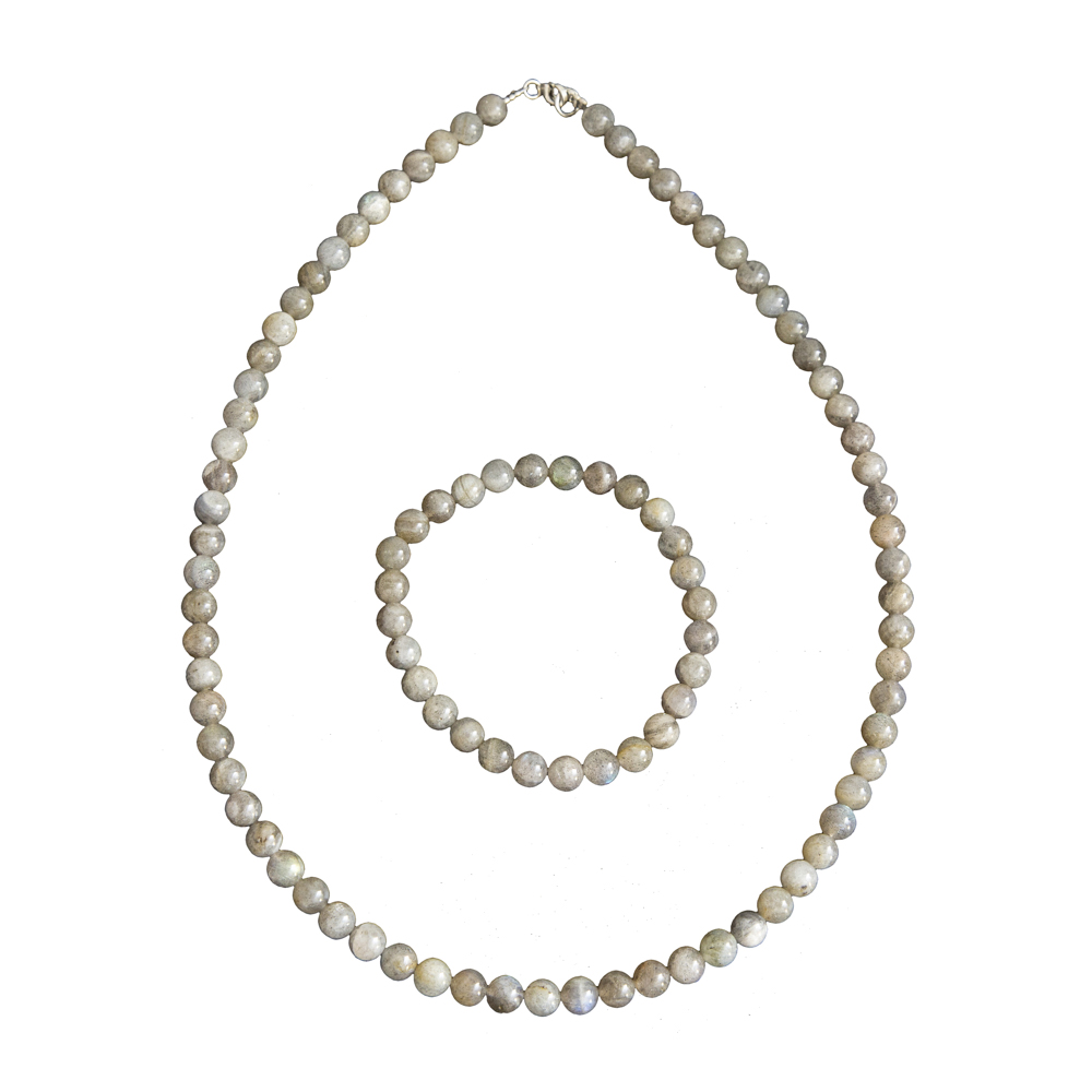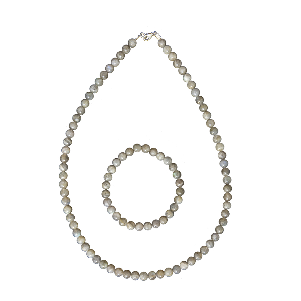 Parure composée du bracelet et du collier en labradorite en pierres boules de 6mm