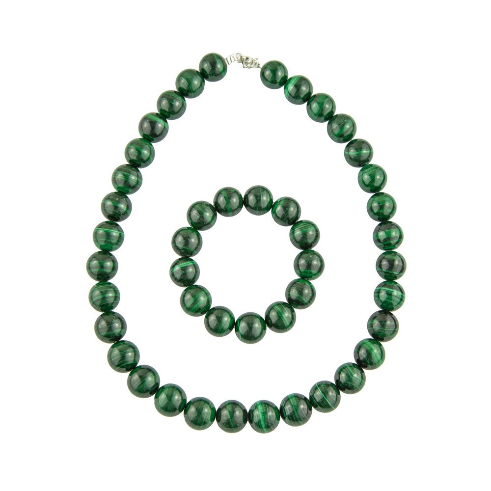 Parure composée du bracelet et du collier en malachite en pierres boules de 14mm