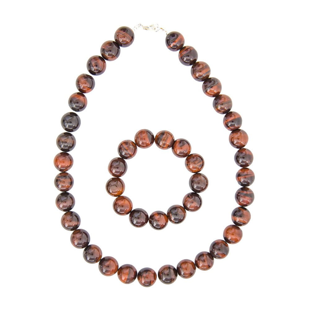 Cette superbe parure composée d’un bracelet et d’un collier ornés de pierres boules oeil de taureau sélectionnées avec soin saura vous émerveiller par ses couleurs chatoyantes au mélange subtil de rouge et de brun. Afin que la parure soit bien ajustée à votre physionomie et à votre style, ces bijoux sont déclinés en différents modèles que vous pouvez choisir en suivant les caractéristiques ci-dessous.