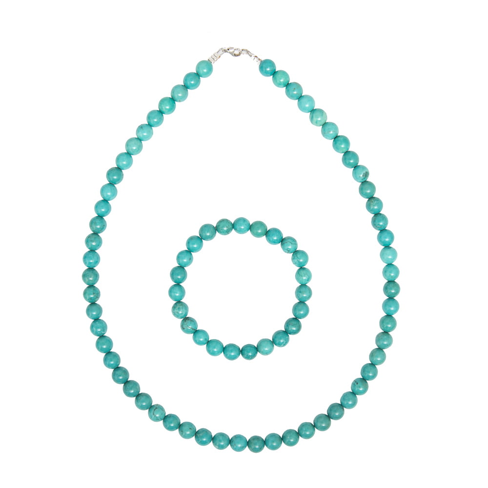 Parure composée du bracelet et du collier en turquoise en pierres boules de 8mm