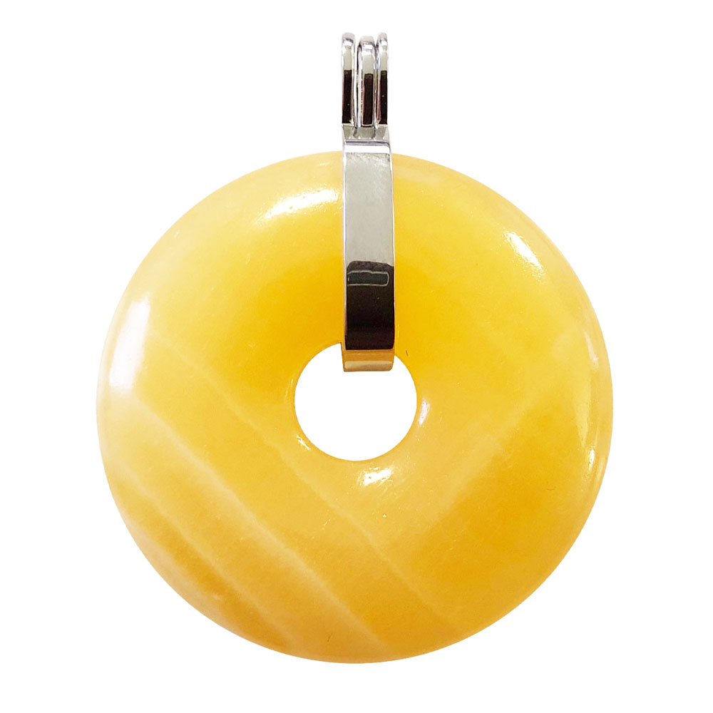 - Sa forte teneur en calcium est parfaite pour fortifier os, articulations, dents et ongles. Le pendentif calcite orange donut renforce le système immunitaire, favorise la croissance des enfants et diminue les nausées.