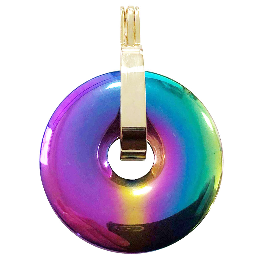 Descriptif du pendentif Hématite arc-en-ciel en forme de pi chinois ou donut