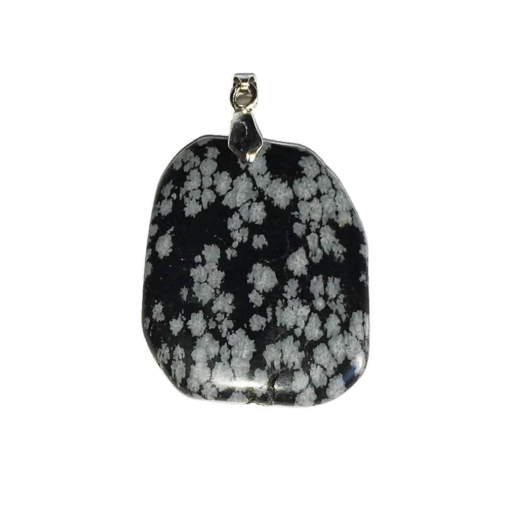 Pouvoirs du pendentif obsidienne flocon de neige en pierre plate en lithothérapie