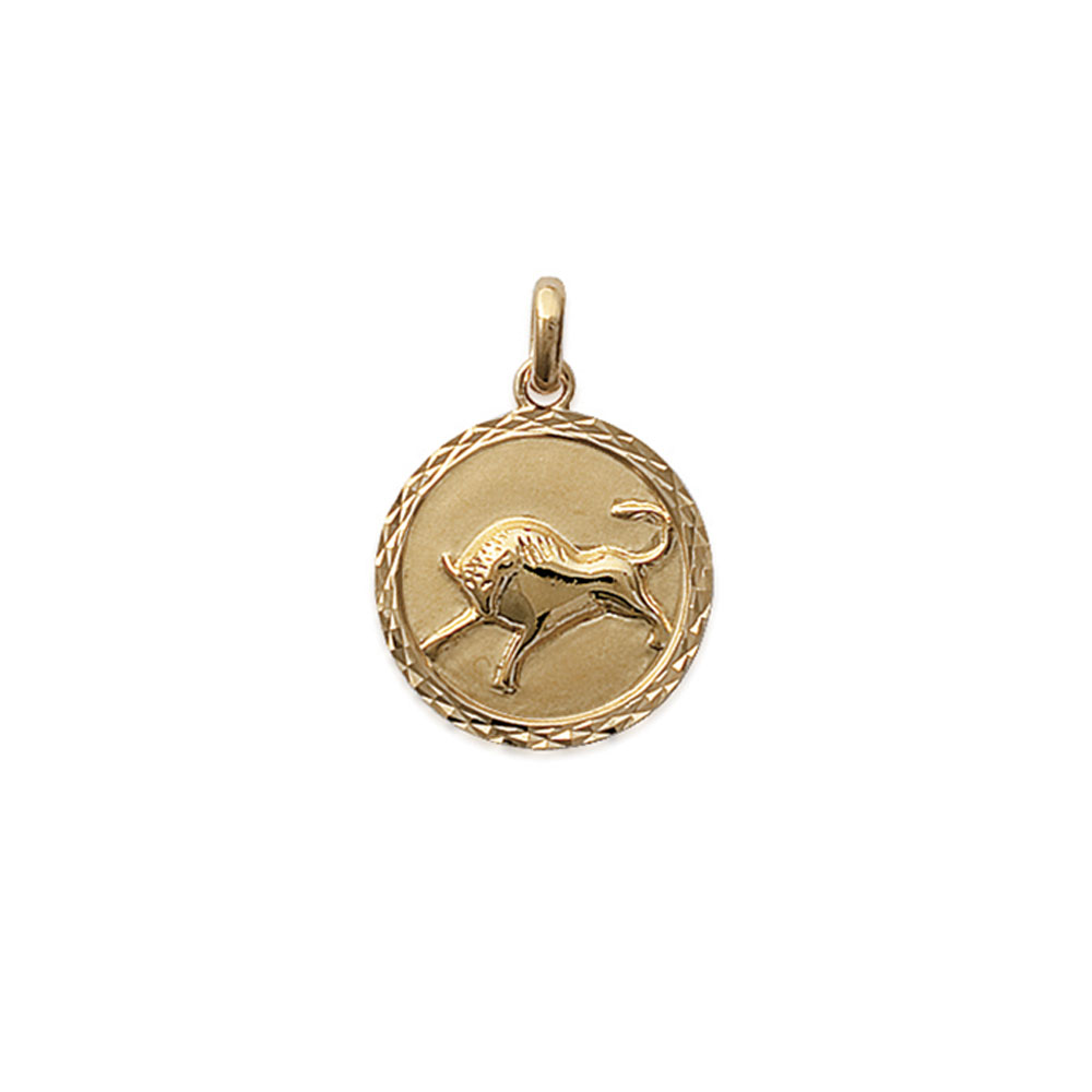 Ce pendentif pour Taureau est élégant et représente cet animal avec de nombreux détails sur un fond lisse. Les différentes parties du taureau sont reconnaissables sur ce bijou à la touche moderne. La position de l’animal est représentative de sa puissance et de son côté bestial tout en montrant son ancrage dans le sol. Le taureau baisse la tête vers la gauche comme s’il s’apprêtait à charger, les pattes avant tendues et écartées. Il relève la queue pour prendre de l’espace et montrer sa force. Il montre ses cornes et bombe l’échine. Ce pendentif est cerclé d’une couronne avec des motifs en forme de losange.