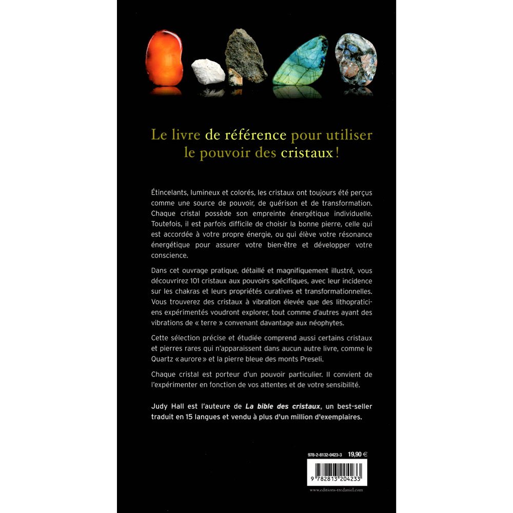 Vous trouverez des cristaux à vibration élevée que des lithopraticiens expérimentés voudront explorer, tout comme d’autres ayant des vibrations de « terre » convenant davantage aux néophytes. Cette sélection précise et étudiée comprend aussi certains cristaux et pierres rares qui n’apparaissent dans aucun autre livre, comme le quartz « aurore » et la pierre bleue des monts Preseli. Chaque cristal est porteur d’un pouvoir particulier.