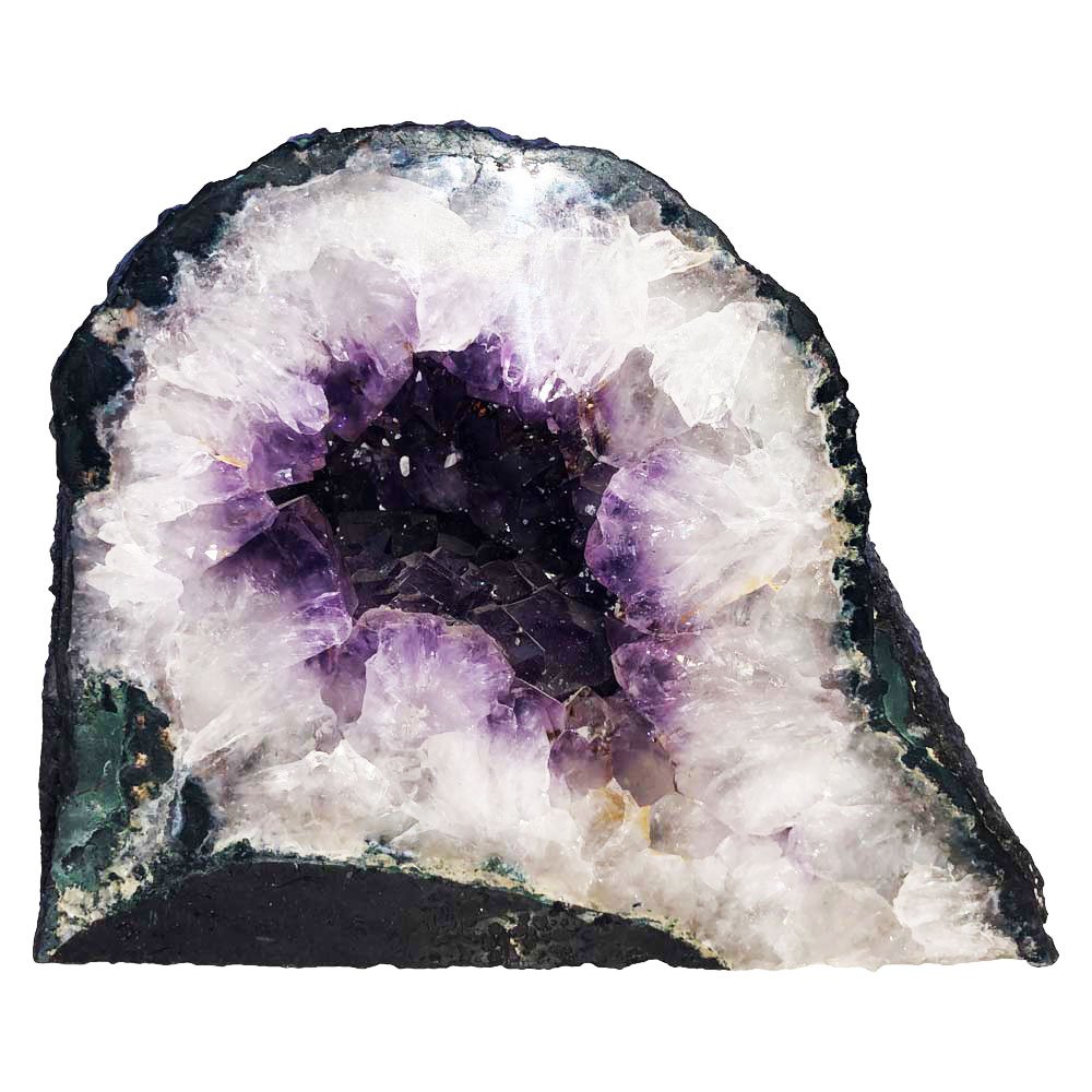 Et si on vous offrait un trésor de la nature? Quelquefois, celle-ci cache ses joyaux. C’est notamment le cas de la géode d’améthyste. Si son aspect extérieur ressemble à une pierre banale, l’intérieur cache des améthystes rutilantes. Pour information, l’améthyste fait partie de la famille des quartz. Sa couleur violette est due à sa composition en fer et en dioxyde de silicium. L’améthyste est exploitée un peu partout dans le Monde, notamment en Australie, au Brésil, à Madagascar, en Russie et en Uruguay. Au temps de Grecs et des Romains, ce minéral était employé pour fabriquer de la verrerie, comme les coupes de vin. Aujourd’hui, il est employé en joaillerie. En effet, on retrouve l’améthyste sur les bagues du clergé, par exemple sur les anneaux pastoraux des évêques. Elle était également l’apanage du Druide chez les Gaulois et du Brahmane en Inde. Dans les coutumes, les noces d’améthyste représentent 48 ans de mariage.