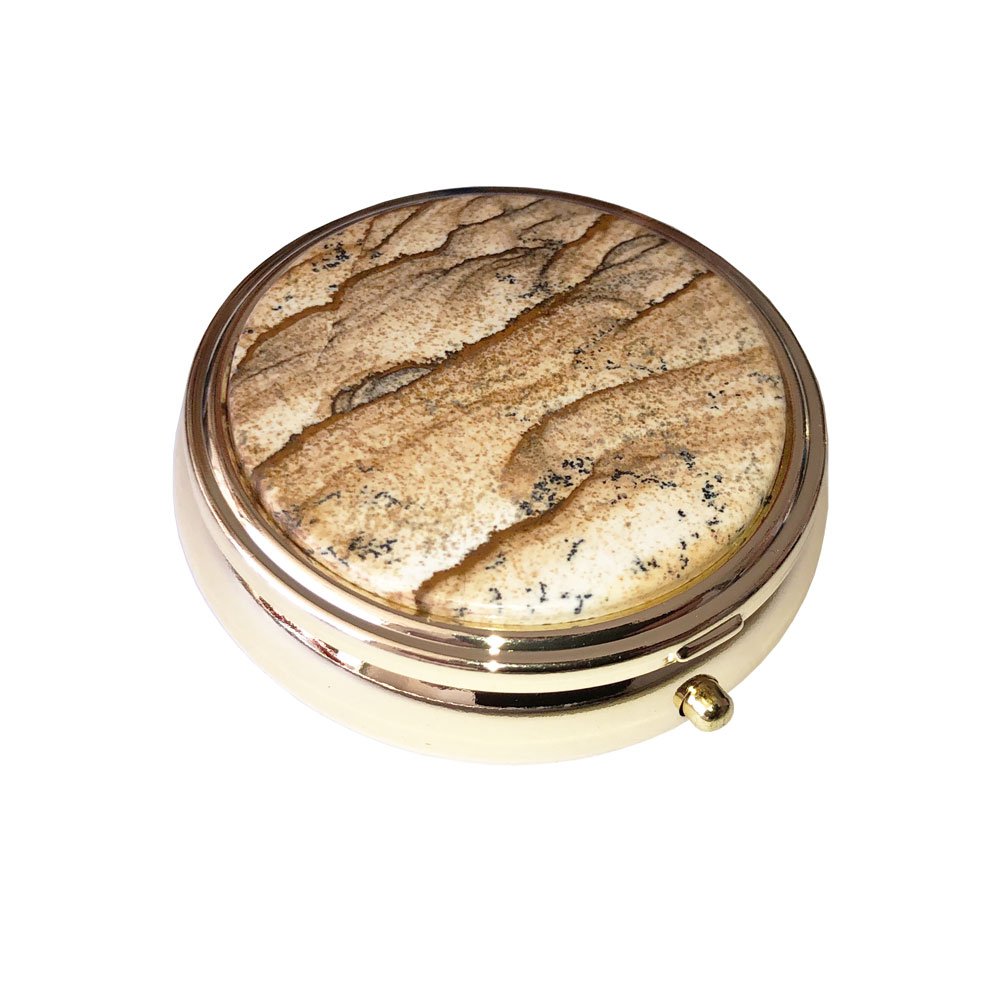 Unique par sa composition la boîte à pilules jaspe paysage, pierre naturelle d’exception, peut être considérée comme un bijou précieux. Elle vous accompagnera partout et vous fera profiter de ses grandes propriétés. La boîte à pilules jaspe paysage se distingue par ses coloris infinis. En fonction de sa composition minérale, elle prend des tons d’or à des tons de noir, de brun, rougeâtres, bleus, beige ou ivoire. Elle est striée de tons superposés ou entrelacés. La pierre jaspe paysage suggère des paysages anciens. Elle est une roche vénérée dans le monde entier.